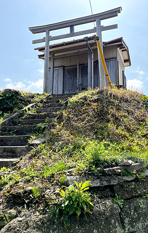厳島神社は県道から浜に降りたところの崖端の小高い岩の上に建てられています。祭神の市杵島姫命は水を司る神とされていて、別名「弁天様」ともいわれ、海を生業とする人々によってここに祀られたものだとされています。
