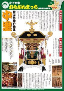 およそ四十戸あまりの子どもからお年寄りまで区民総出で行われる中里の神輿祭は、毎年八月九日に神輿御魂入れを行い、十日には安房神社を目指して渡御が行われる。中里の神輿は、前を低くして走るのが特徴ですが、近年に担ぎ棒を檜の長いものに替えてさらに担ぎやすくなりました。