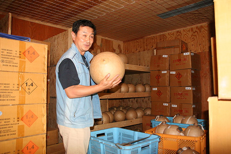 「今は制作スタッフが5人いまして、大体乾燥している冬~春の時期に注文を受けた一年分の花火を作ってしまいます。花火は乾き具合で燃焼が違いますから、冬の晴れた日に天日干しにするのがポイントなんです。乾燥機でやってしまう所もあるみたいですが、色が全然ちがいますのでうちは天日でやっています。今の時期は、スターマインの構成だったり打ち上げる順番などの仕分けをじっくりやっているところです。」